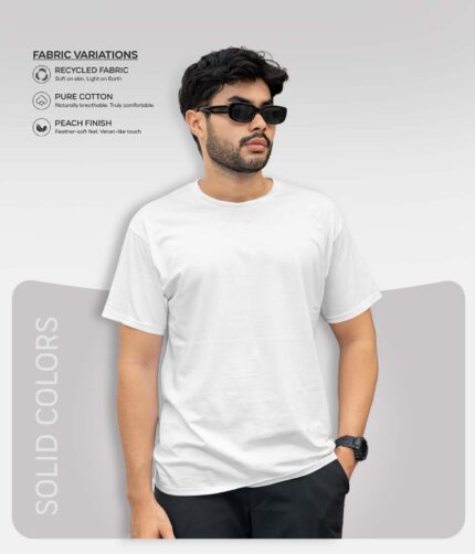 Men’s Round Neck Half Sleeve solid colour T-Shirt – White