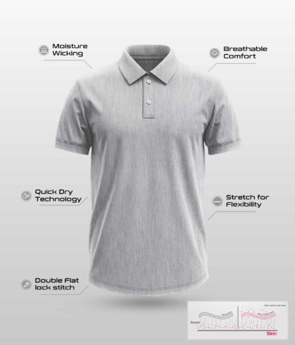 Men’s Polo T-Shirts – Collar Neck – Grey Melange