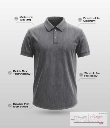 Men’s Polo T-Shirts – Collar Neck – Charcoal Melange