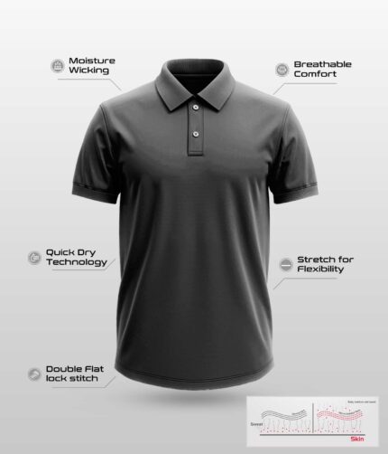 Men’s Polo T-Shirts – Collar Neck – Black