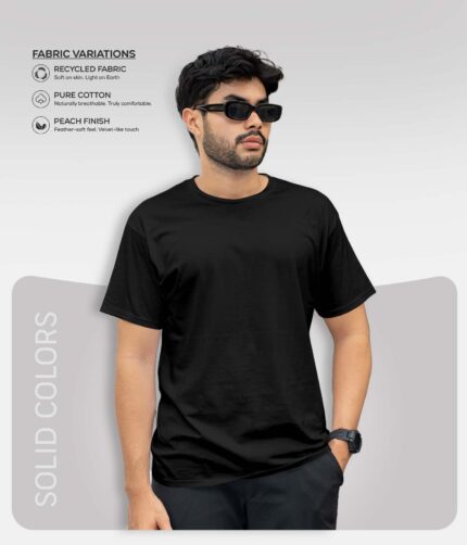 Men’s Round Neck Half Sleeve solid colour T-Shirt – Black