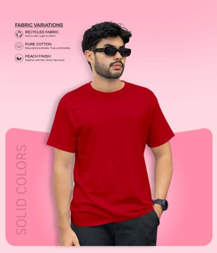 Men’s Round Neck Half Sleeve solid colour T-Shirt – Red