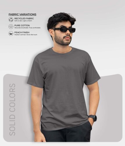 Men’s Round Neck Half Sleeve solid colour T-Shirt -Charcoal Melange