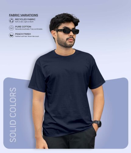 Men’s Round Neck Half Sleeve solid colour T-Shirt – Navy