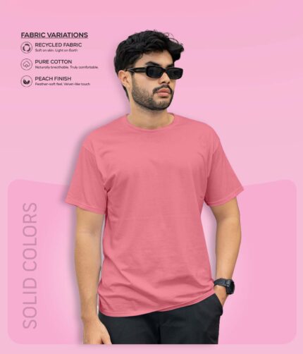 Men’s Round Neck Half Sleeve solid colour T-Shirt – Pink