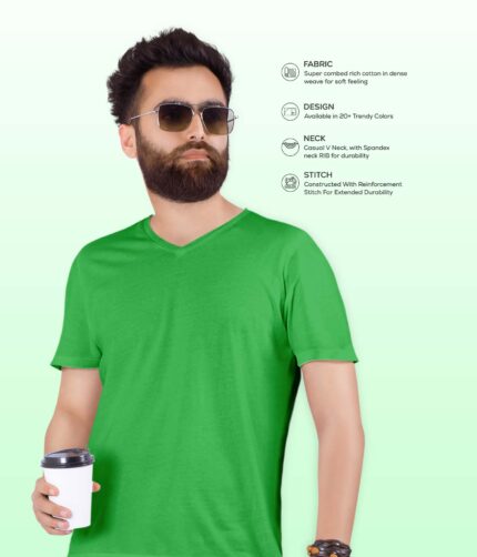Men’s V Neck Half Sleeve solid colour T-Shirt – Light Green