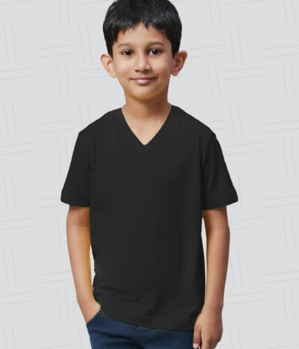 Boy’s V Neck Half Sleeve solid colour T-Shirt – Black