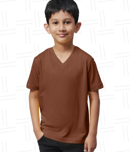Boy’s V Neck Half Sleeve solid colour T-Shirt – Brown