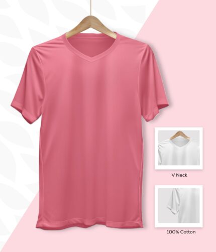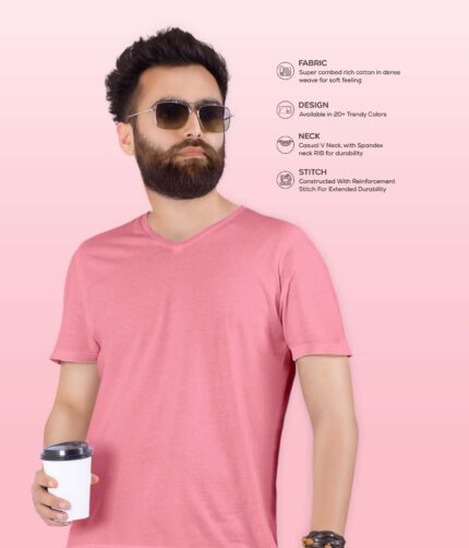 Men’s V Neck Half Sleeve solid colour T-Shirt – Pink