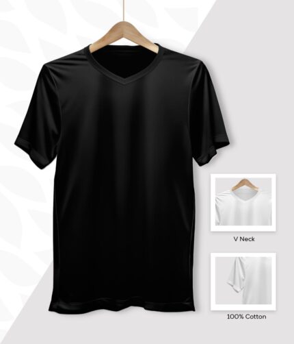 Men’s V Neck Half Sleeve solid colour T-Shirt – Black