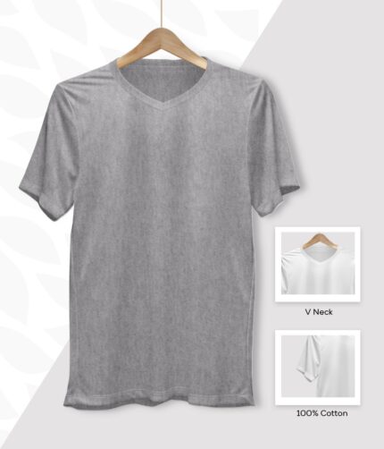 Men’s V Neck Half Sleeve solid colour T-Shirt – Grey Melange