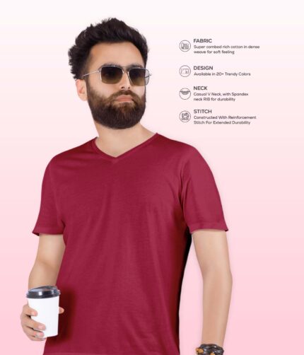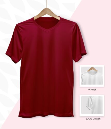 Men’s V Neck Half Sleeve solid colour T-Shirt – Maroon