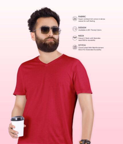 Men’s V Neck Half Sleeve solid colour T-Shirt – Red