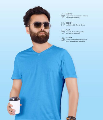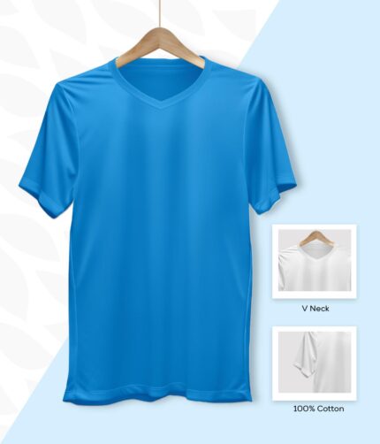 Men’s V Neck Half Sleeve solid colour T-Shirt – Sky Blue