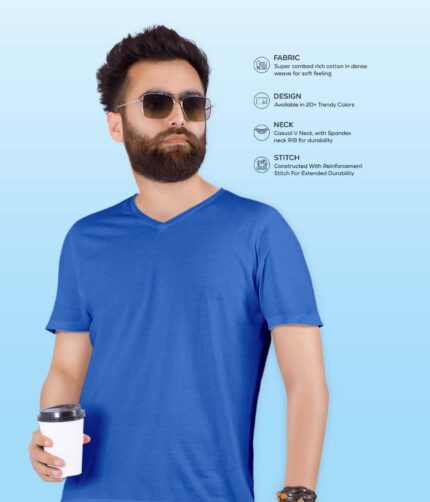 Men’s V Neck Half Sleeve solid colour T-Shirt – Royal blue