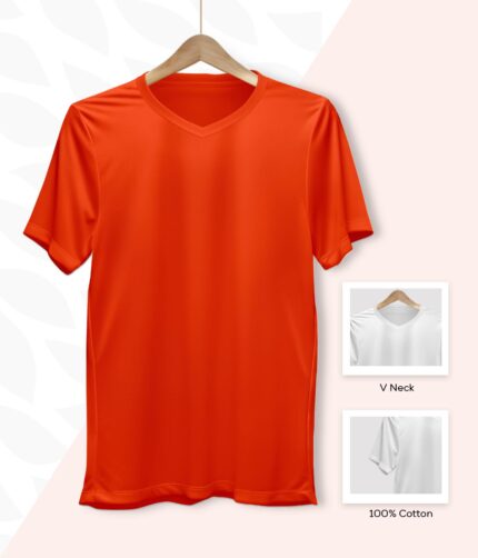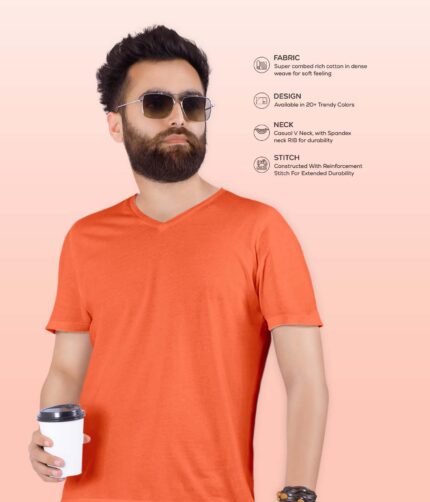 Men’s V Neck Half Sleeve solid colour T-Shirt – Orange