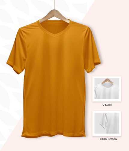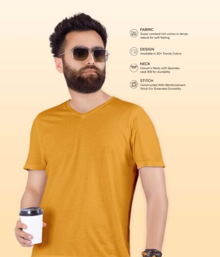 Men’s V Neck Half Sleeve solid colour T-Shirt – Gold