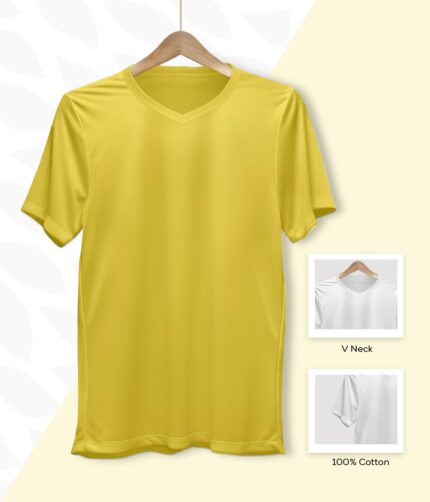 Men’s V Neck Half Sleeve solid colour T-Shirt – Yellow