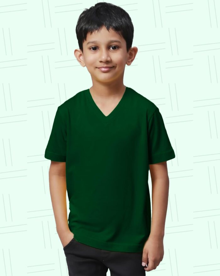 Boy’s V Neck Half Sleeve solid colour T-Shirt – Dark green