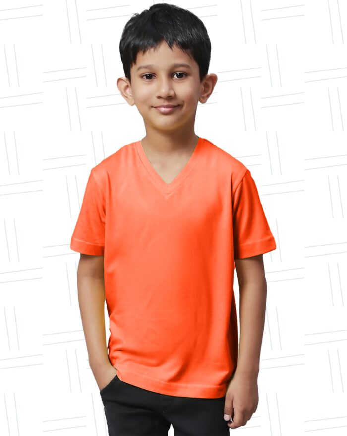 Boy’s V Neck Half Sleeve solid colour T-Shirt – Orange
