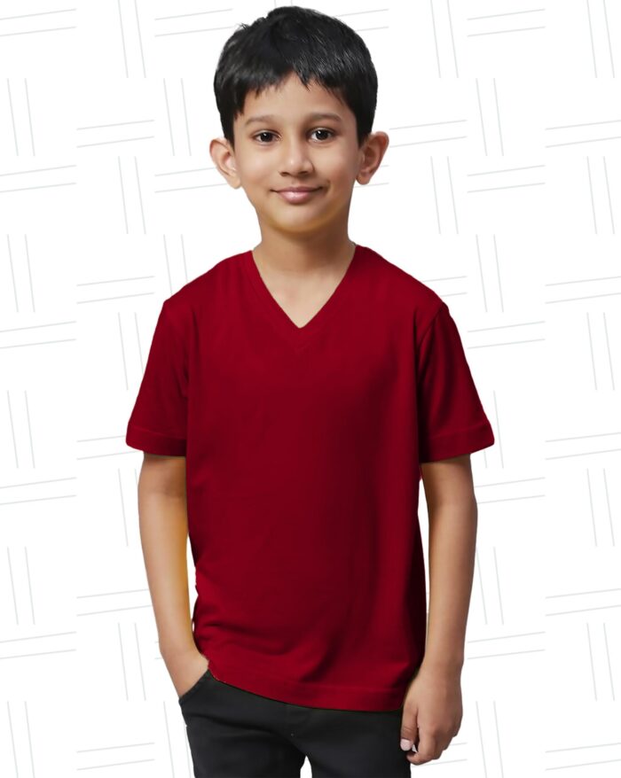 Boy’s V Neck Half Sleeve solid colour T-Shirt – Red