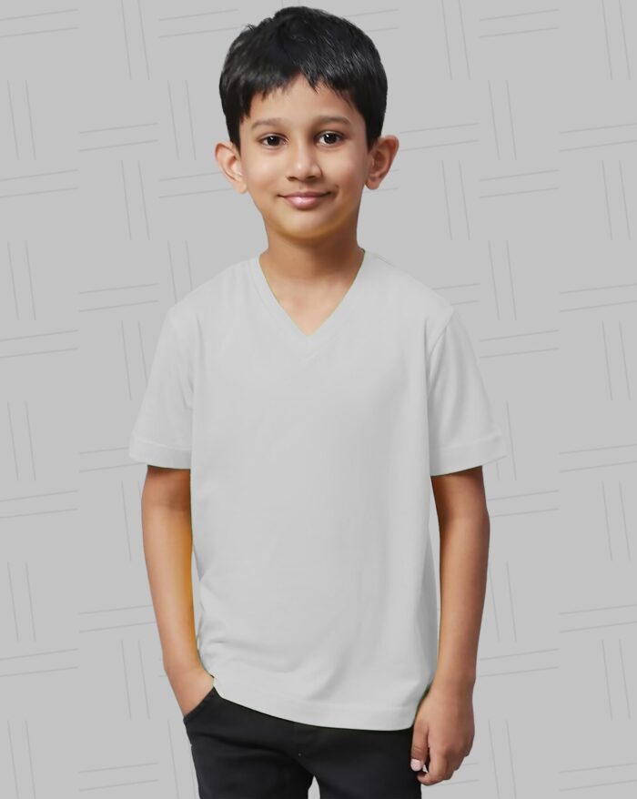 Boy’s V Neck Half Sleeve solid colour T-Shirt – White
