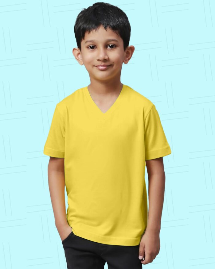 Boy’s V Neck Half Sleeve solid colour T-Shirt – Yellow