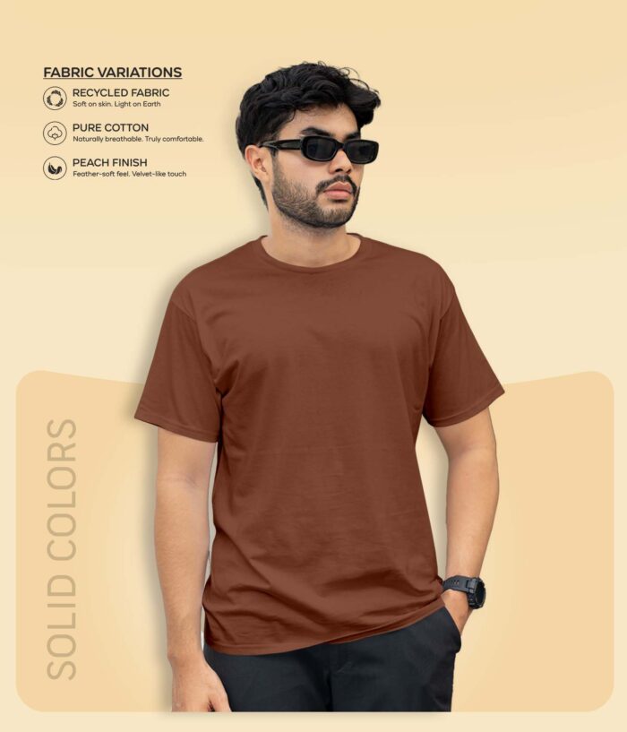 Men’s Round Neck Half Sleeve solid colour T-Shirt – Brown