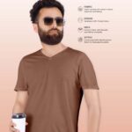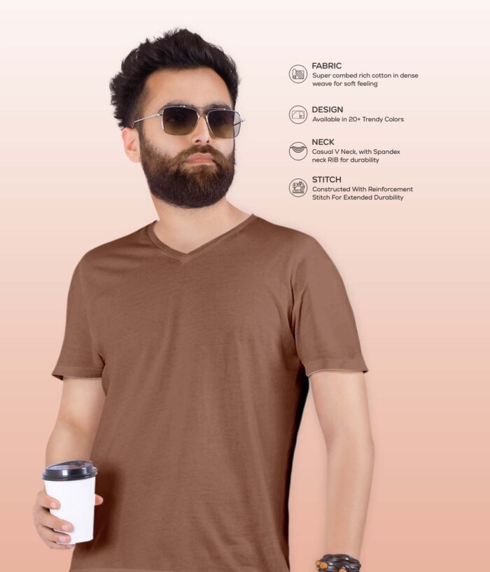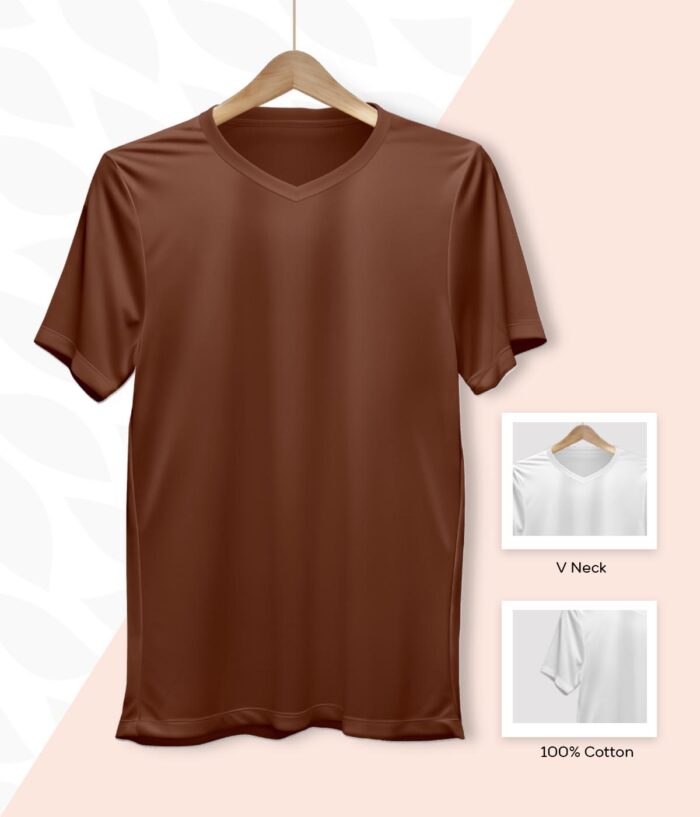 Men’s V Neck Half Sleeve solid colour T-Shirt – Brown