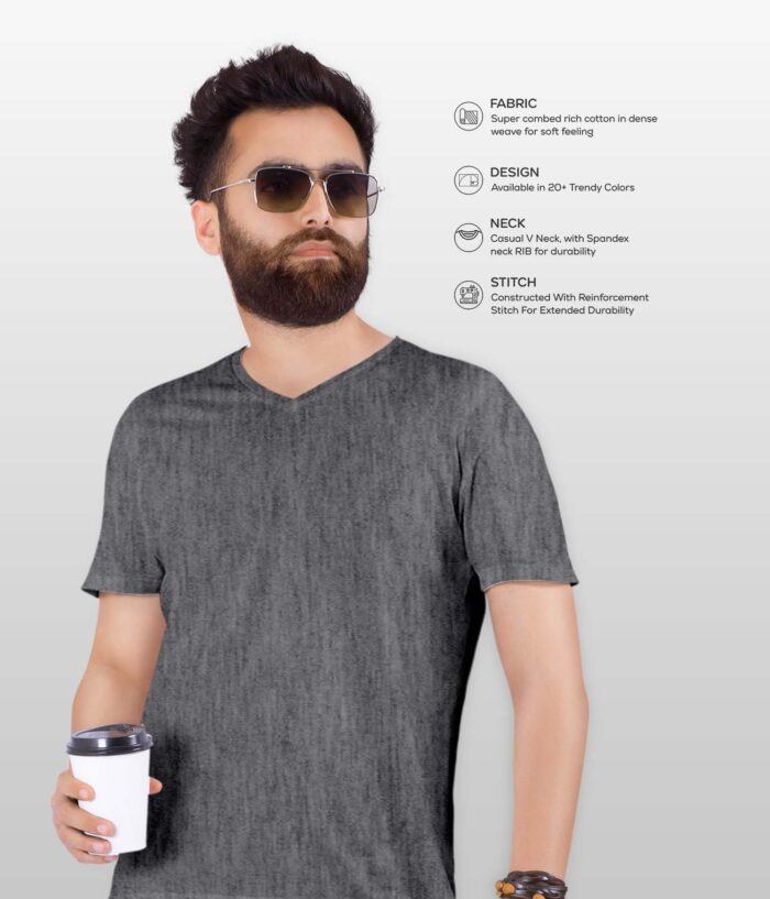 Men’s V Neck Half Sleeve solid colour T-Shirt – Charcoal melange