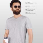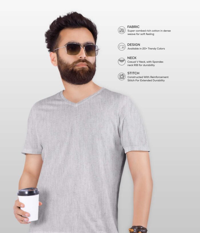 Men’s V Neck Half Sleeve solid colour T-Shirt – Grey Melange