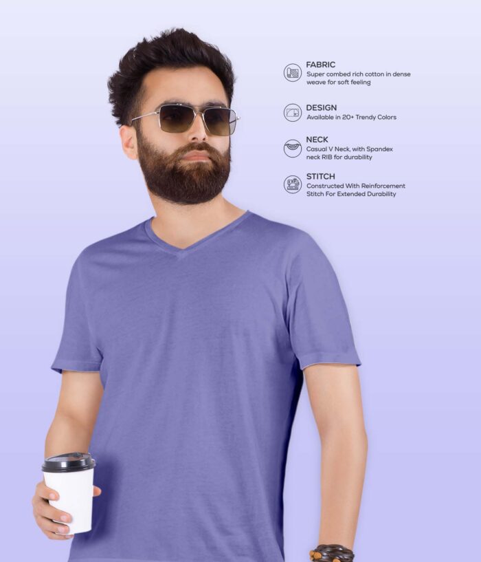 Men’s V Neck Half Sleeve solid colour T-Shirt – Violet