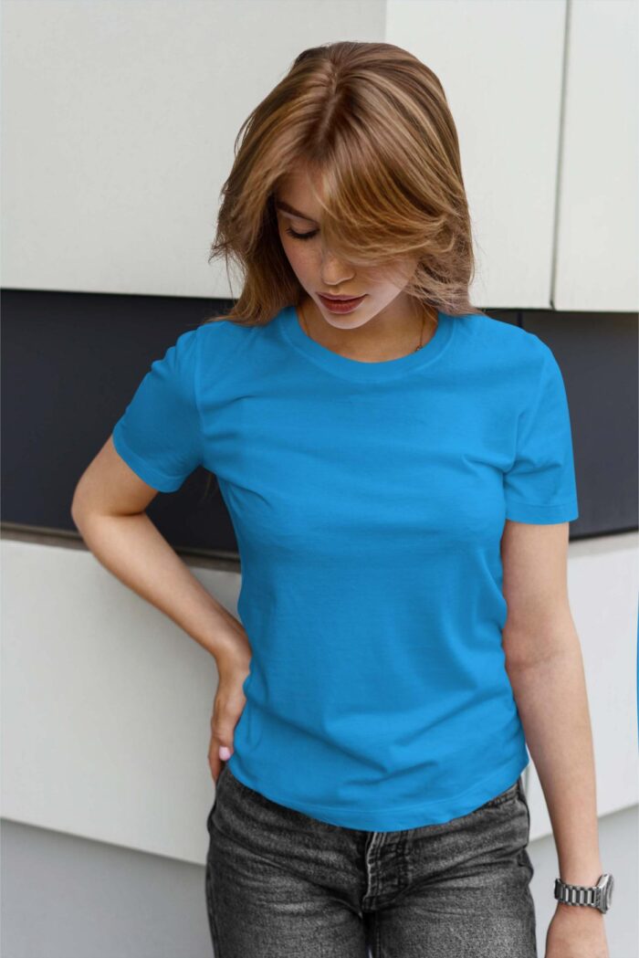 Be the first to review “Women’s Round Neck T-Shirts – Sky Blue”